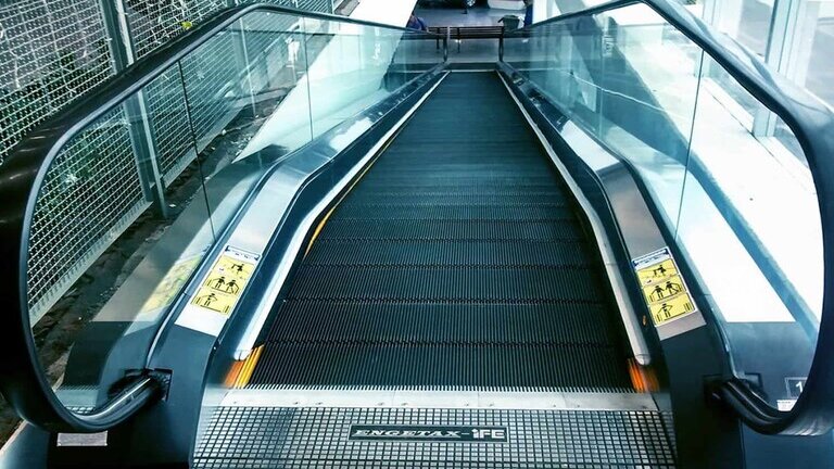 Método de transporte que consiste em uma escada inclinada cujos degraus movem-se para cima ou para baixo permanecendo numa posição horizontal.